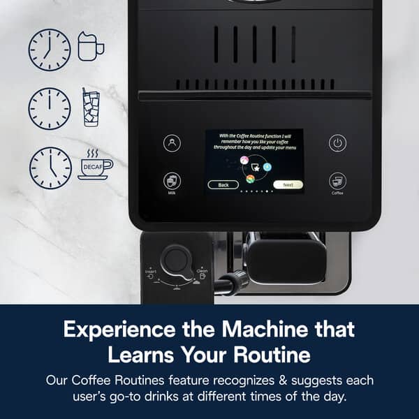 With an intuitive 3.5-inch color touch display, featuring rich, visual animations for you & 3 other users, experience the machine that learns your routine and saves your preferred drink settings for various times of the day.