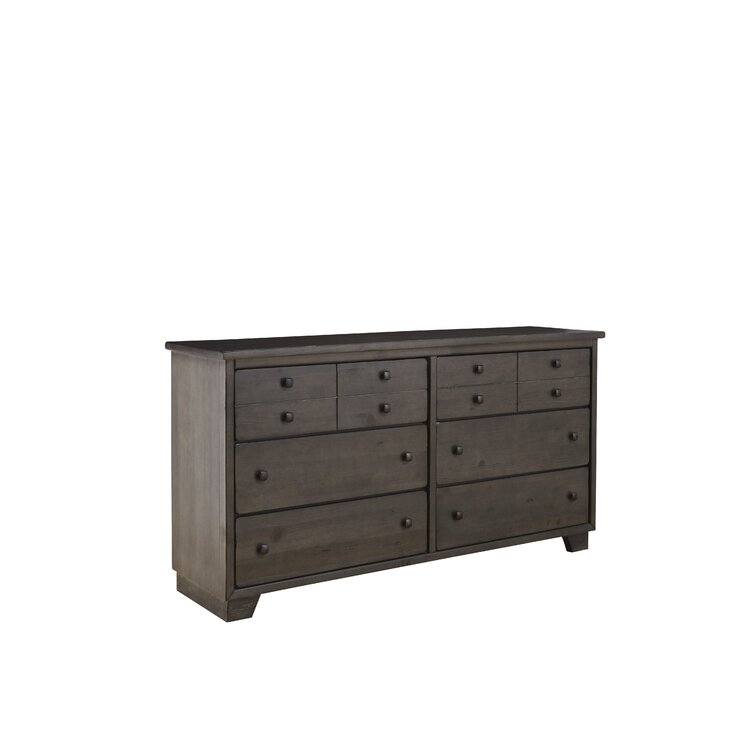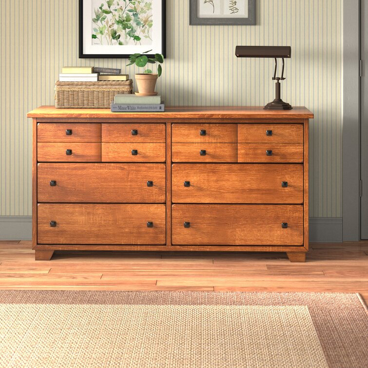 This 6-drawer double dresser completes your bedroom with classic style and a rustic touch. It's made from solid and engineered wood with a natural finish that highlights its natural wood grain. A horizontal construction provides ample space for six drawers that let you tuck away everything from clothes and bedding to linens and bedroom essentials. We love that this piece has a weathered finish for an antique-inspired look. It also comes with a wall anchor to keep it secure in your space. Best of all, this piece arrives at your door ready to use.