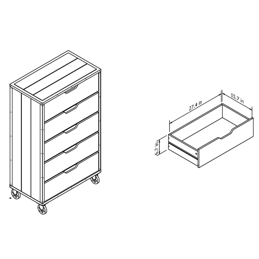- Drawers dimensions: 6.7 inches high x 27.4 inches wide x 15.7 inches deep