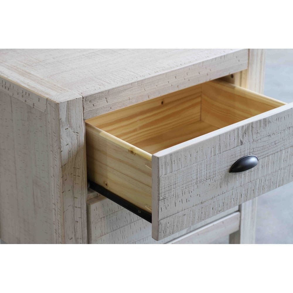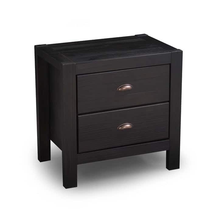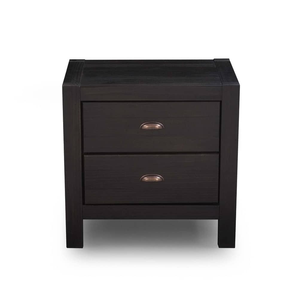 Give your bedroom a rustic look with the warmth of this solid wood nightstand. Made of 100% solid pine wood, this nightstand features a sturdy construction that can last for years. The finish is designed to accentuate the unique grain, knots, and natural textures in the wood panels; and each piece is sanded and distressed by hand leading to variations in the color and texture that make every unit unique. This distressed finish is very durable and easy to touch-up.