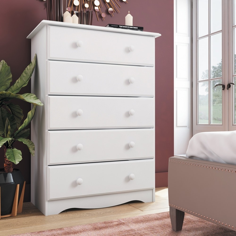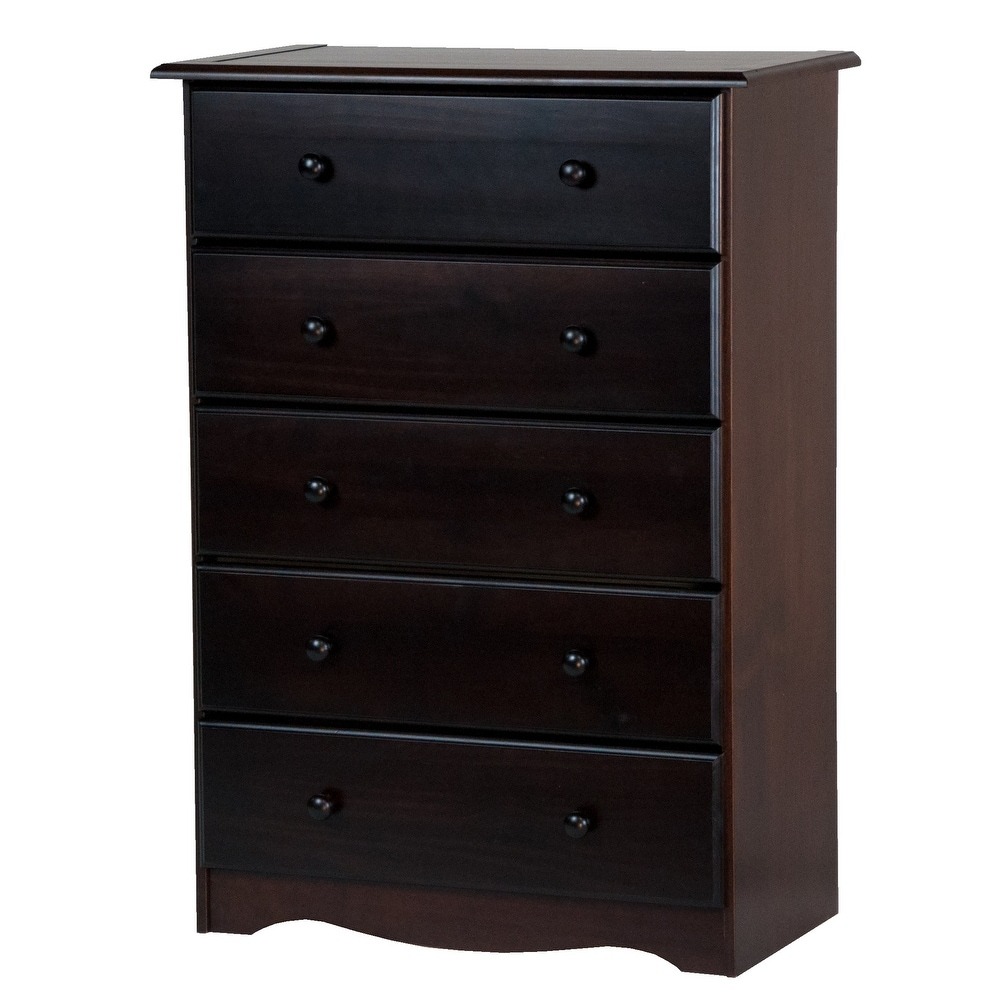 The unsurpassed beauty, elegance, and the smell of real wood is what makes this 100% solid wood 5-drawer chest stand apart from its "engineered wood" analogues. Its ageless design will blend perfectly with any interior and seamlessly accommodate your storage requirements with its 5 standard drawers made of unfinished wood to showcase the raw wood grain so appealing to real wood lovers!