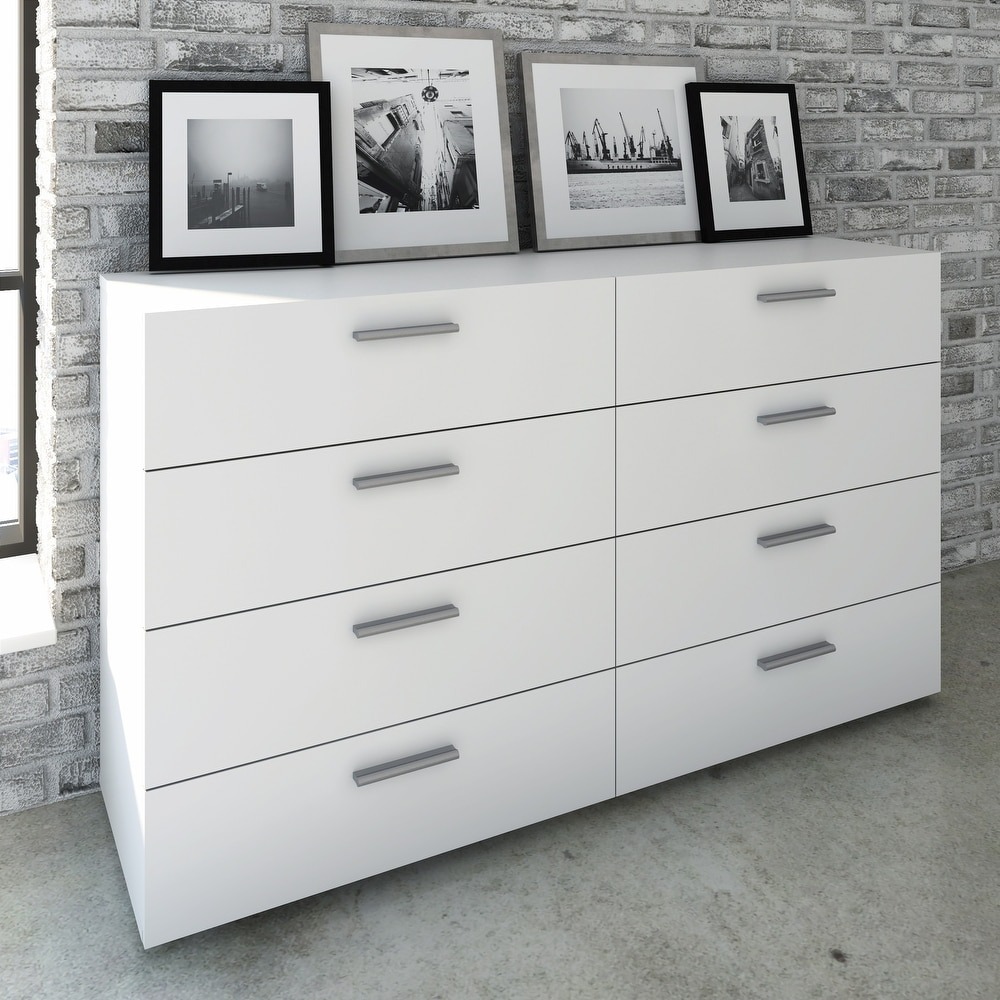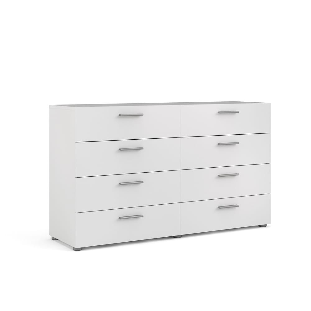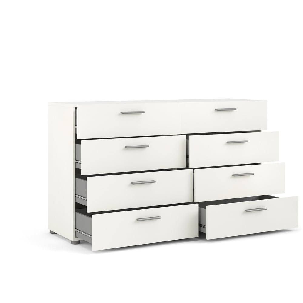 Experience the perfect blend of form and function with the Porch & Den Angus Space-saving 8-Drawer Double Dresser. This contemporary dresser features a sleek and sophisticated design with eight spacious drawers that will easily accommodate your clothes. The metal drawer runners and modern plastic silver color bar handles ensure that the drawers retract smoothly, while the tip-resistant hardware ensures maximum safety. Available in multiple colors, this dresser is perfect for small rooms and will complement any modern interior with its Scandinavian look and design.