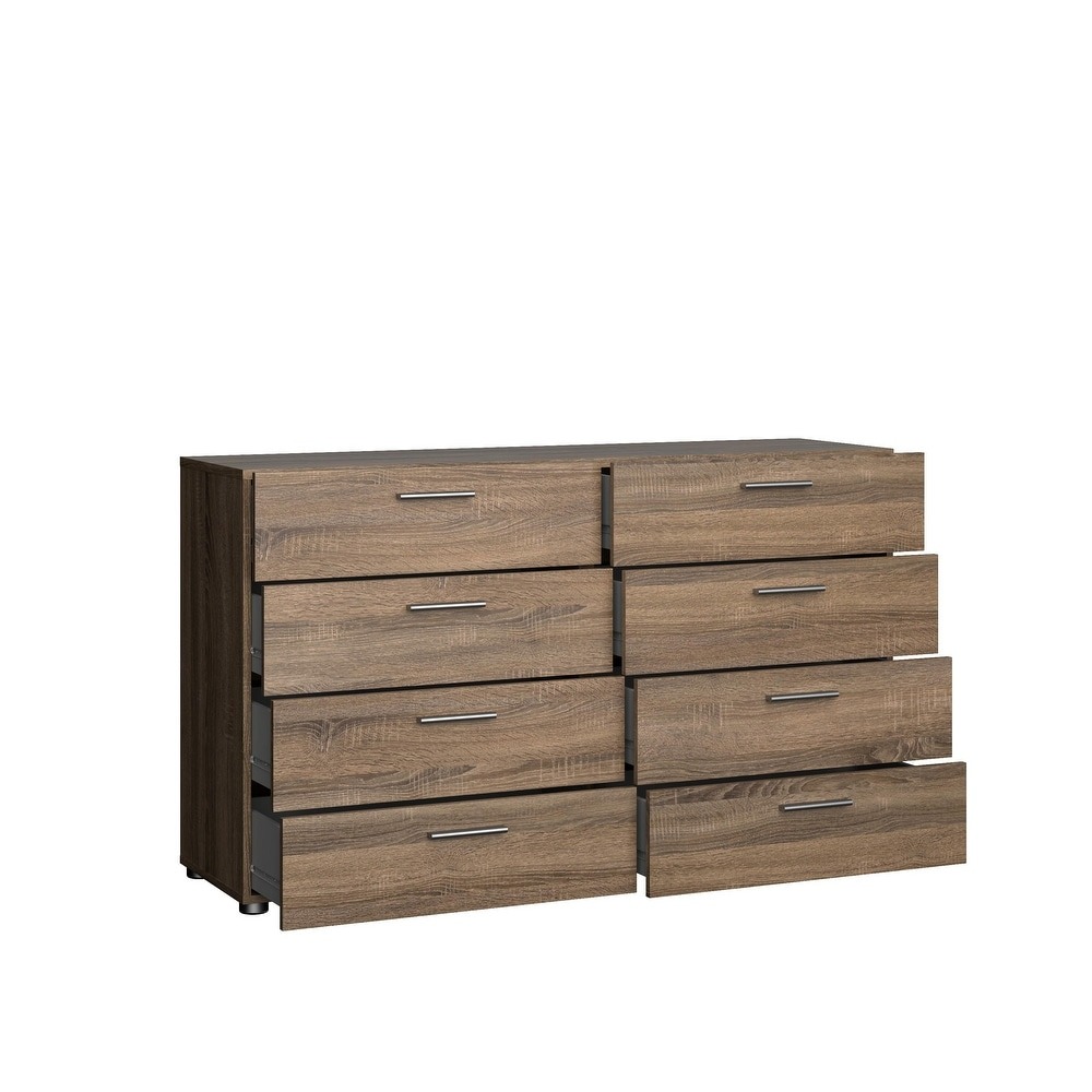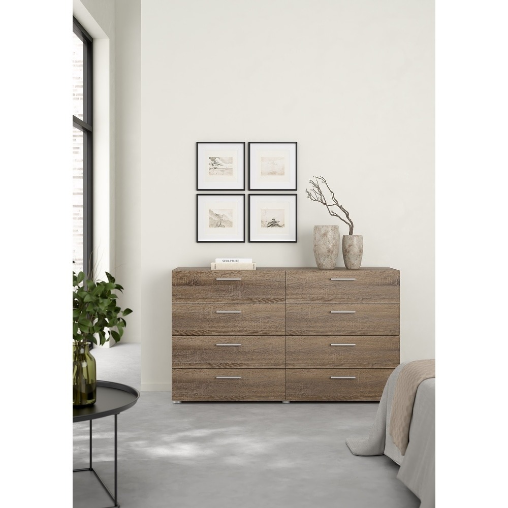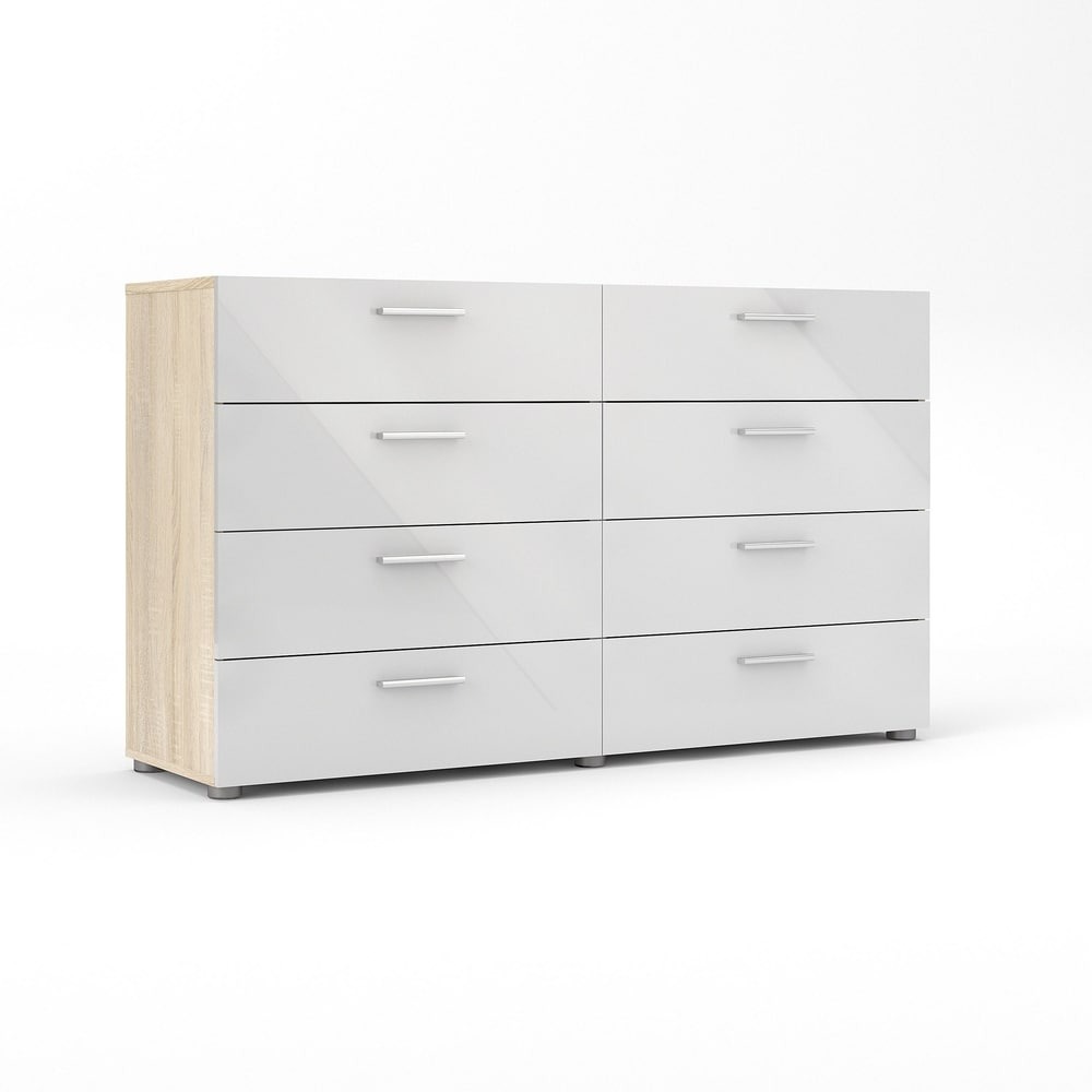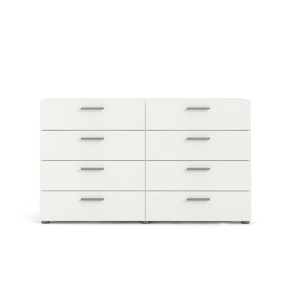 Experience the perfect blend of form and function with the Porch & Den Angus Space-saving 8-Drawer Double Dresser. This contemporary dresser features a sleek and sophisticated design with eight spacious drawers that will easily accommodate your clothes. The metal drawer runners and modern plastic silver color bar handles ensure that the drawers retract smoothly, while the tip-resistant hardware ensures maximum safety. Available in multiple colors, this dresser is perfect for small rooms and will complement any modern interior with its Scandinavian look and design.