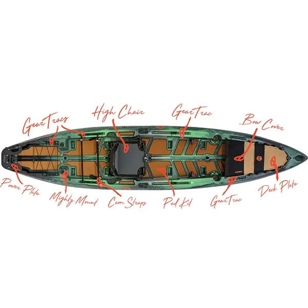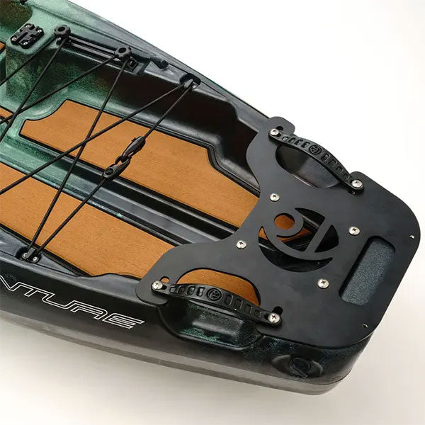 The fore tankwell features dual YakAttack GearTracs with Vertical Tie-Down Loops and Cam Straps for securing coolers, BlackPaks, and more. The aft tankwell features dual YakAttack GearTracs with adjustable bungees for everything else you need. The pass-through features two MightyMount II's for additional accessory mounting options. The stern features our Power Plate which was custom designed for this model—allowing the mounting of a Power Pole or various motor options.