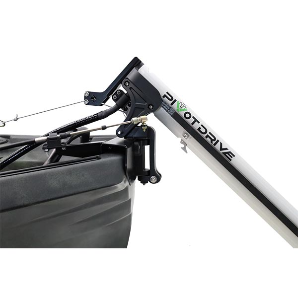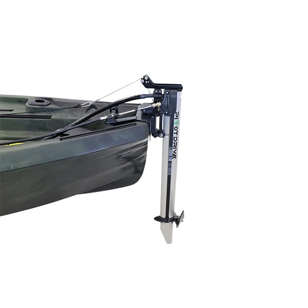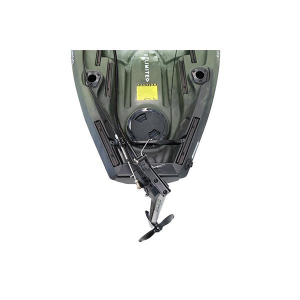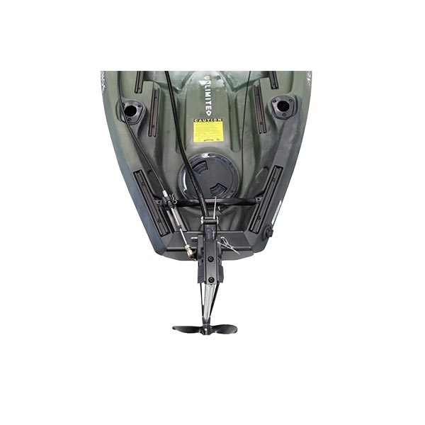 The included PIVOT Drive is a high performance pedal drive accessory for the UNLIMITED. Unlike every other kayak pedal system on the market, the PIVOT Drive 1) Is completely an add-on accessory; 2) Does not require a hole in the deck floor; 3) Has a transom-mounted prop for superior maneuverability and position control, and 4) Preserves a clean, open fishing deck.