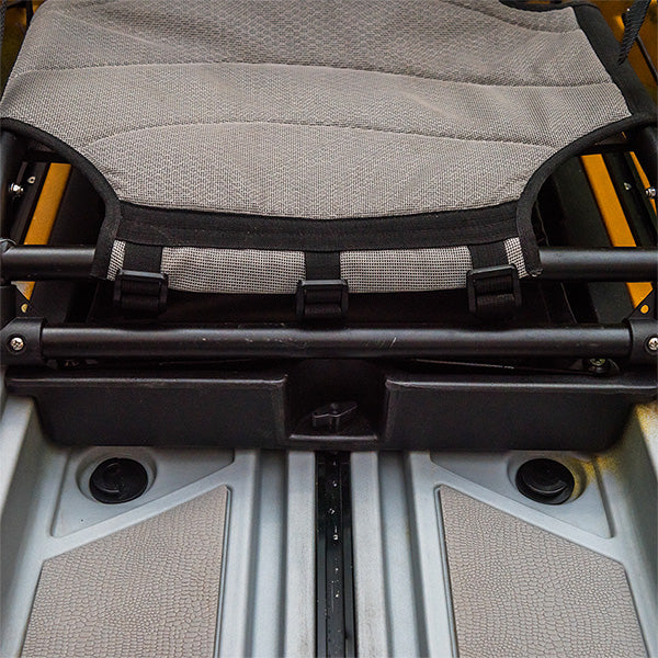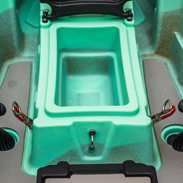 Get all the storage you need throughout the Elite Pro Angler kayak for your fishing gear and other belongings. The stern at the back has a large tank, secured with cross-braced bungee, ideal for safeguarding your equipment. You can store more of your belongings under your aluminium seat or in the storage area inside your kayak by the round lockable hatch at the top of the tank well. You’ll also find a handy toolbox in front of you, ideal for mounting a fish finder and stowing the battery pack inside. Find even more storage beyond the toolbox and by the kayak’s bow.
