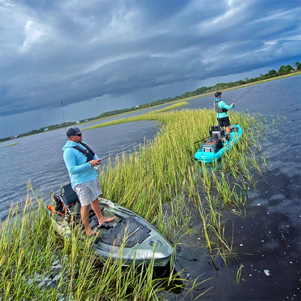 The Recon 120 comes with the option to add the Helix Pedal Drive. Aftermarket motors can also be deployed with a direct-to-boat stern mounting interface. A supremely wide-open deck affords the angler an abundance of space, freedom of motion, and provides a rock-solid platform from which to stand, cast, and hookset in confidence. The functional layout of the intuitive topdeck interface keeps all your gear and essentials within reach, with ample surface areas for personal modifications.
