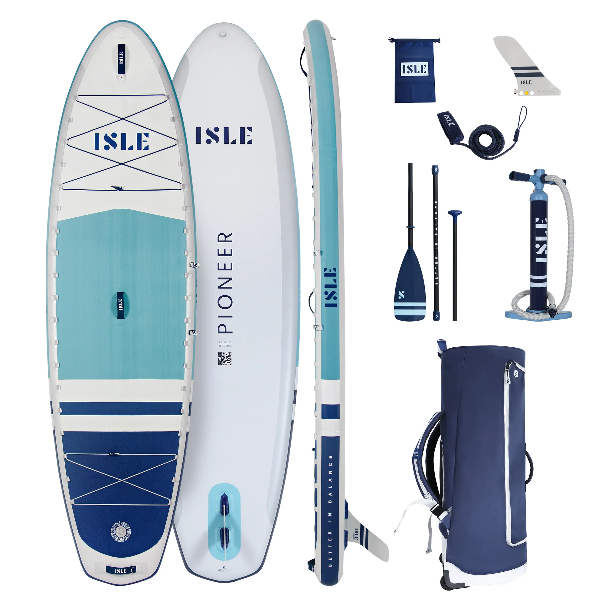 The patent-pending system runs the length of the board for adding accessories and conversion from SUP to kayak. Compatible accessories include an inflatable kayak seat, inflatable footrest, all-in-one fishing crate, versa strap, board connector straps, waterproof backpack/deck bag, and more.