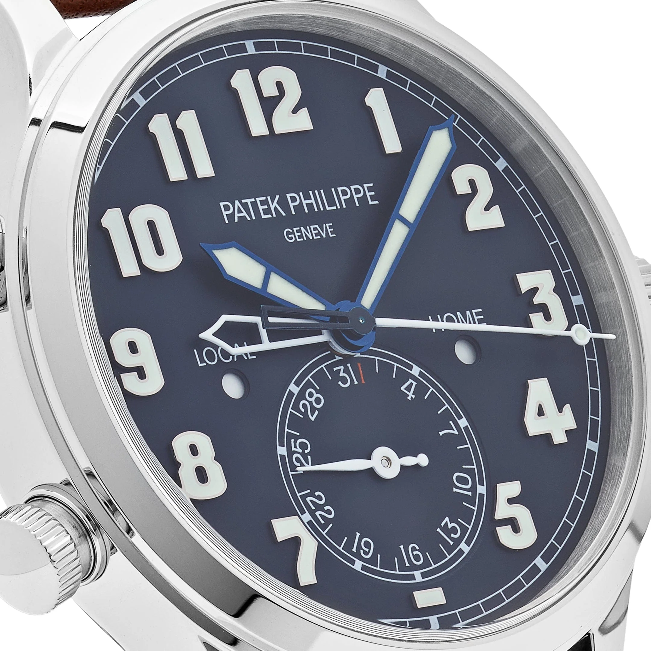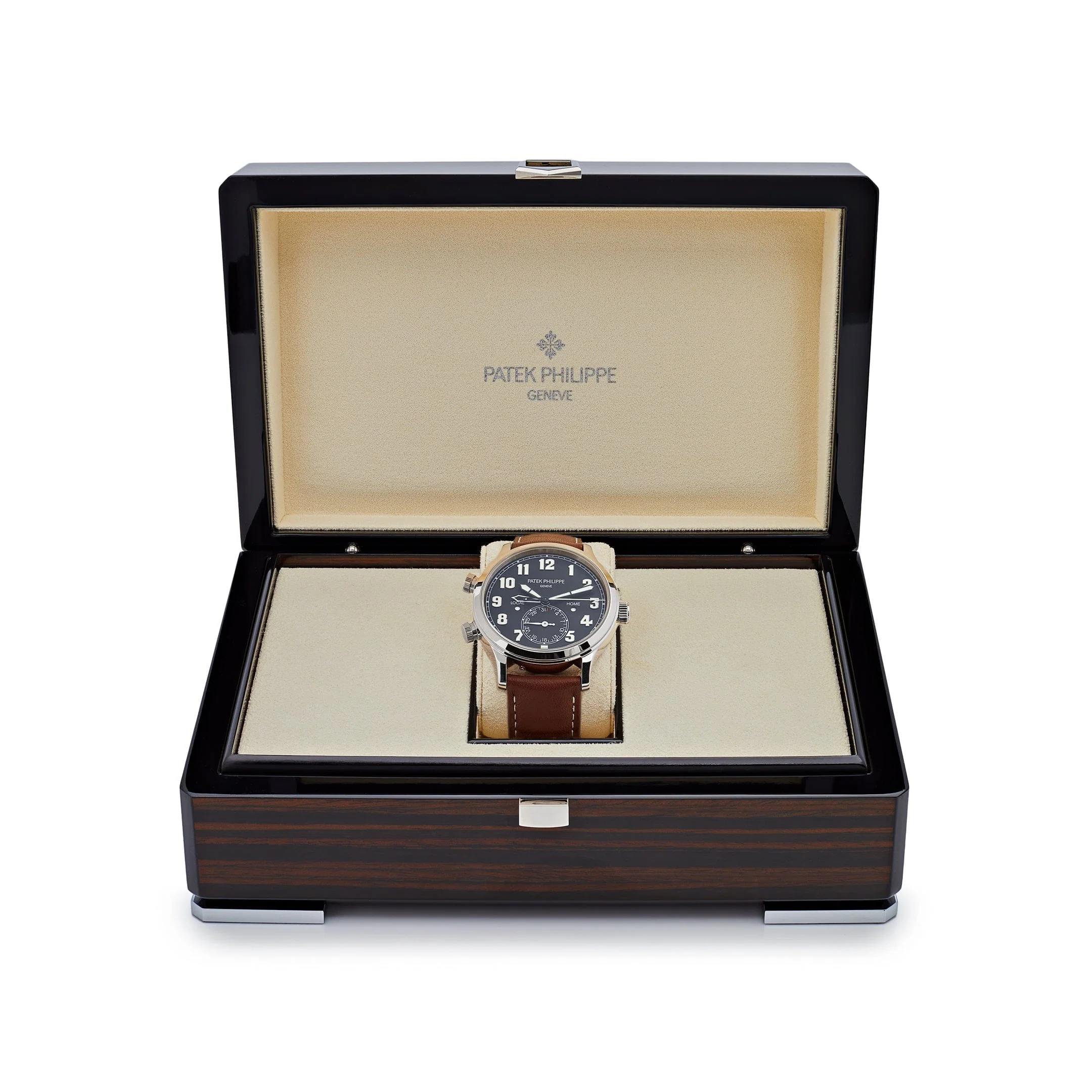 Paired with a navy calfskin leather strap and a white gold pin buckle, the 5524G-001 combines utility, elegance, and Patek Philippe��s renowned craftsmanship. A standout piece for collectors seeking a unique and functional take on the classic Calatrava.