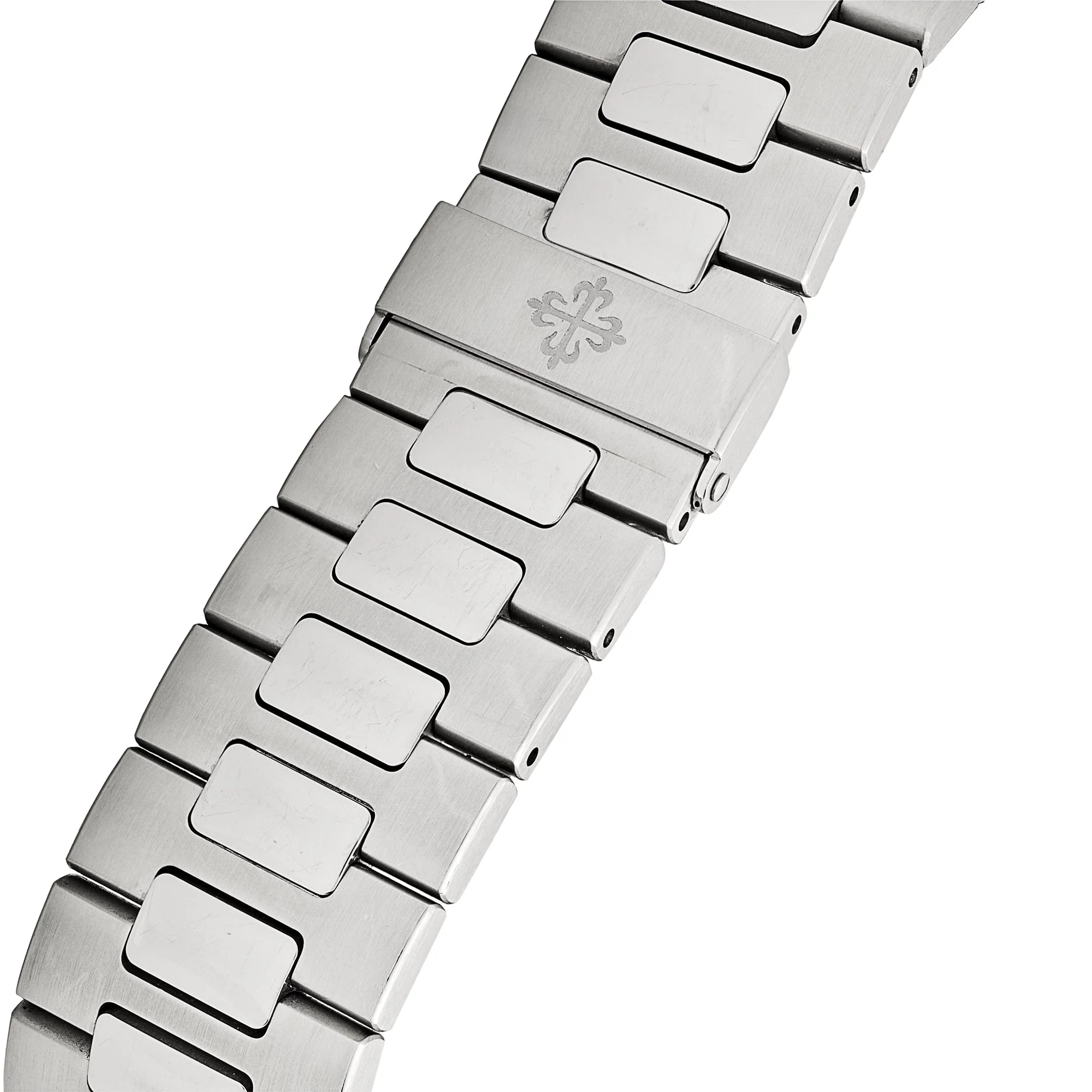 The Patek Philippe 5712/1A-001 in stainless steel with a blue dial and moon phase complication is a celebrated model within the Nautilus collection. The blue dial, with its elegant complications, including and power reserve, enhances the allure of this limited-production piece.�