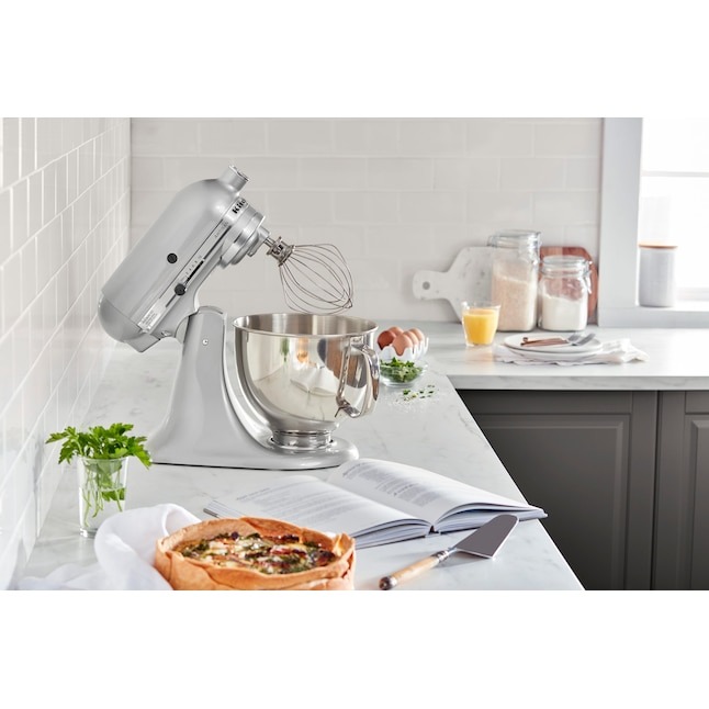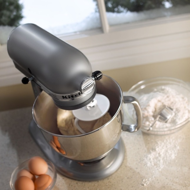 Whether you need 9 dozen* of your signature chocolate chips cookies or shredded chicken for Taco Tuesday with friends and family, the KitchenAid® Artisan® Series 5 Quart Tilt-Head Stand Mixer has the capacity for every occasion. This durable tilt-head stand mixer was built to last, and features 10 speeds to gently knead, thoroughly mix and whip ingredients for a wide variety of recipes and comes in over 20 colors to perfectly match your kitchen design or personality. Get creative and make more with your mixer with over 10 optional hub-powered attachments**, from food grinders to pasta makers and more. *Using the flat beater; 28g dough each **sold separately.
